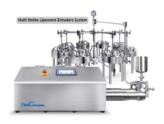 The multiple liposome extruders system is able to process the volume from 1L to 200L. It features both the temperature and pressure sensors in the product line, and a control panel to control the production for liposomes.