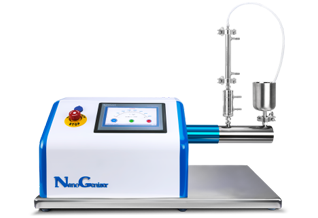 The NanoGenizer, a high-pressure homogenizer, is able to produce nanoemulsions with the combined forces of microfluidization and shear. NanoGenizer maximizes particle reduction, speeds up processing and lowers the time and overall cost of production.