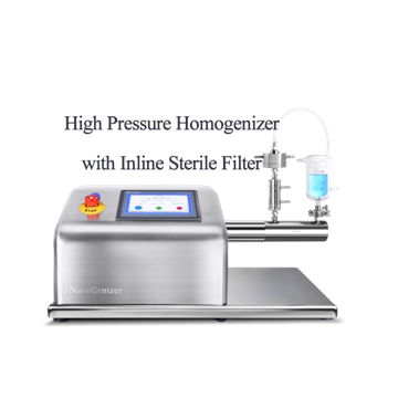 Genizer offers the NanoGenizer high-pressure homogenizer for preparation and online sterile filtering for the sterilization of nanoemulsions without interruption. In addition, Genizer also provides the light scattering particle sizer for measuring the size of nanoemulsions.